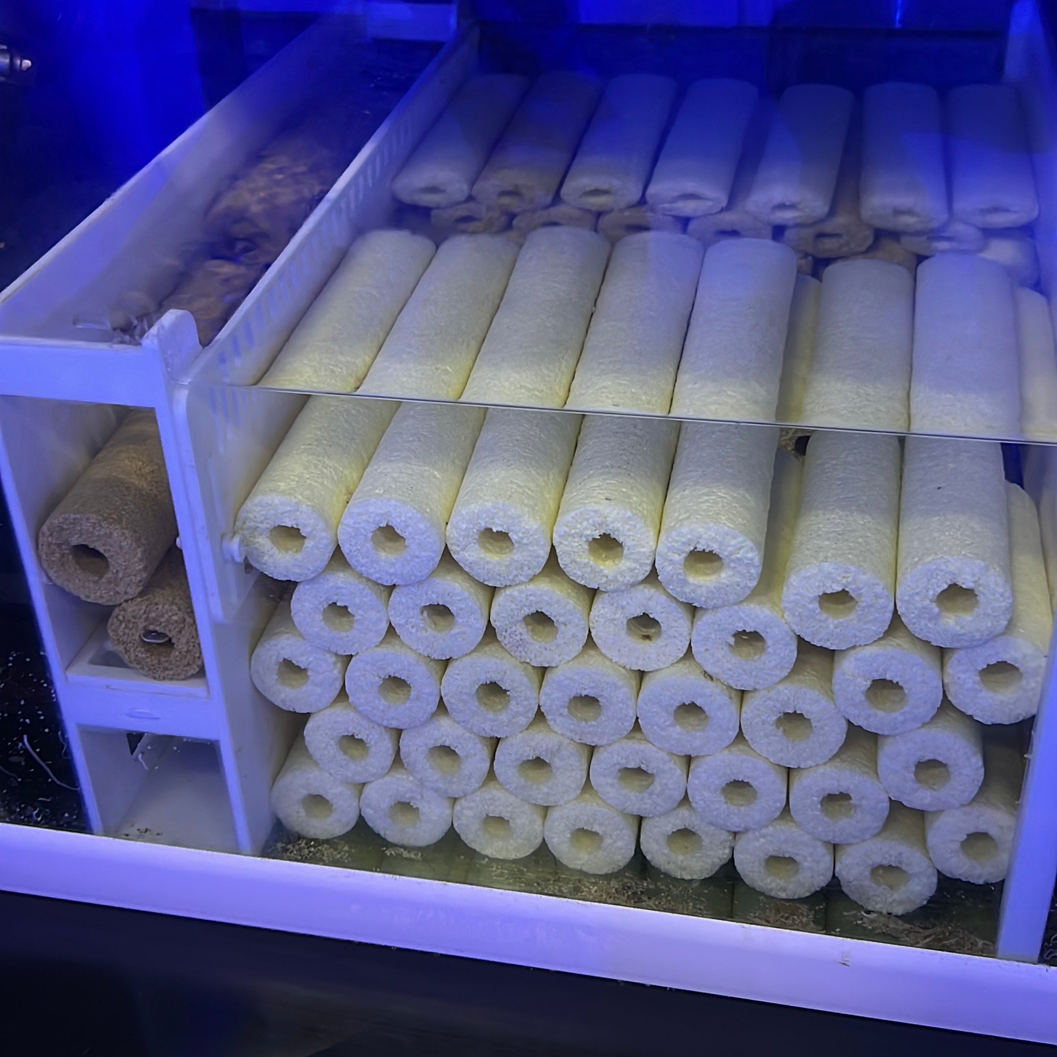 AkuaMatrix Cylinder biological media has a unique micro-porous structure formed under 1800°C high-temperature calcination. This high porosity structure provides optimal environments for aerobic and anaerobic bacteria to colonize and thrive. Such conditions are crucial for the rapid breakdown of ammonia, nitrites, and nitrates along with pH stabilization.